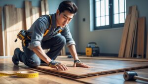 2. ゲストハウス新築工事、置床・乾式二重床、ダミー合板、捨て貼り、フローリング根太張り工事