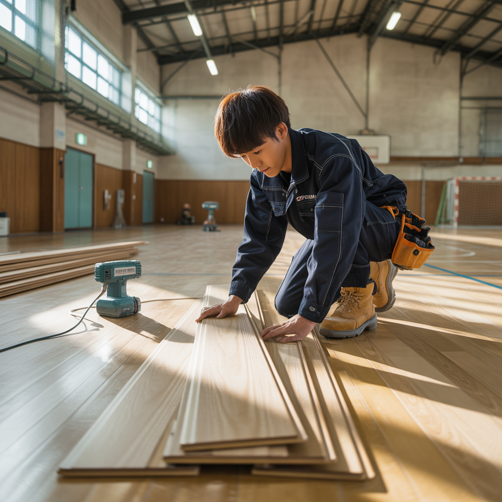 体育館床改修で使われる鋼製床下地の施工の流れとは…