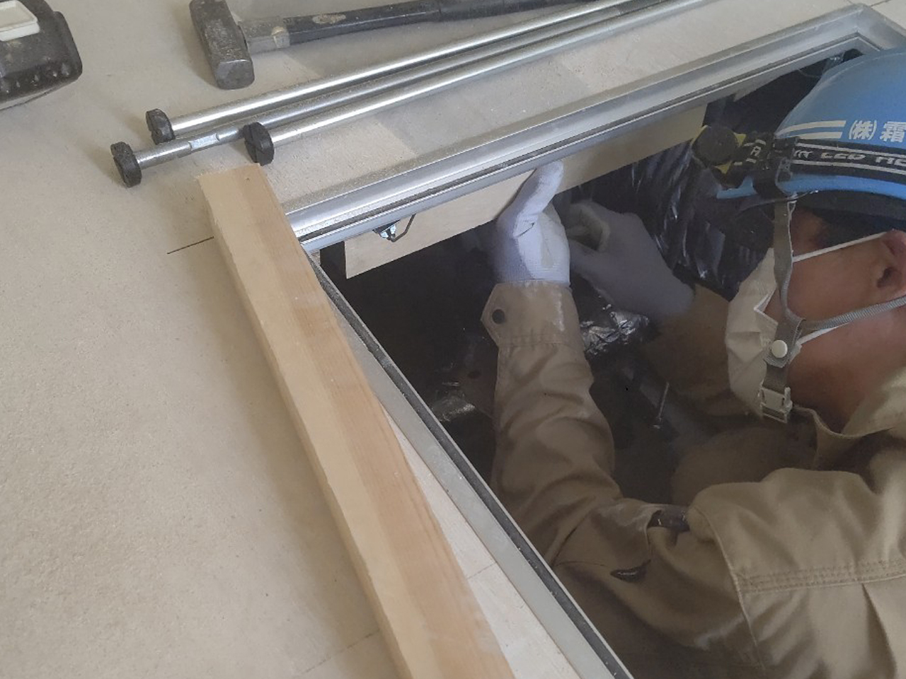 2. ゲストハウス新築工事、置床・乾式二重床、ダミー合板、捨て貼り、フローリング根太張り工事