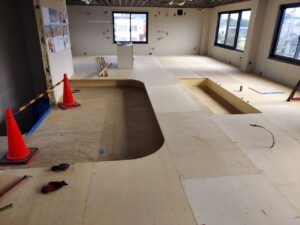1. 医院新築に伴う置床・乾式二重床、フローリング根太張り及びOAフロア工事