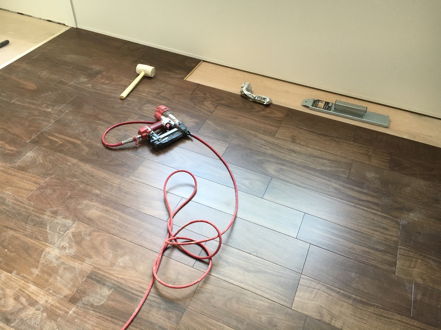 2. ゲストハウス新築工事、置床・乾式二重床、ダミー合板、捨て貼り、フローリング根太張り工事