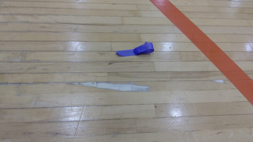 体育館床は、常にシューズの摩擦や激しい着地の衝撃を受け続けるため、時間の経過とともに剥がれたり木材が反ったりします。