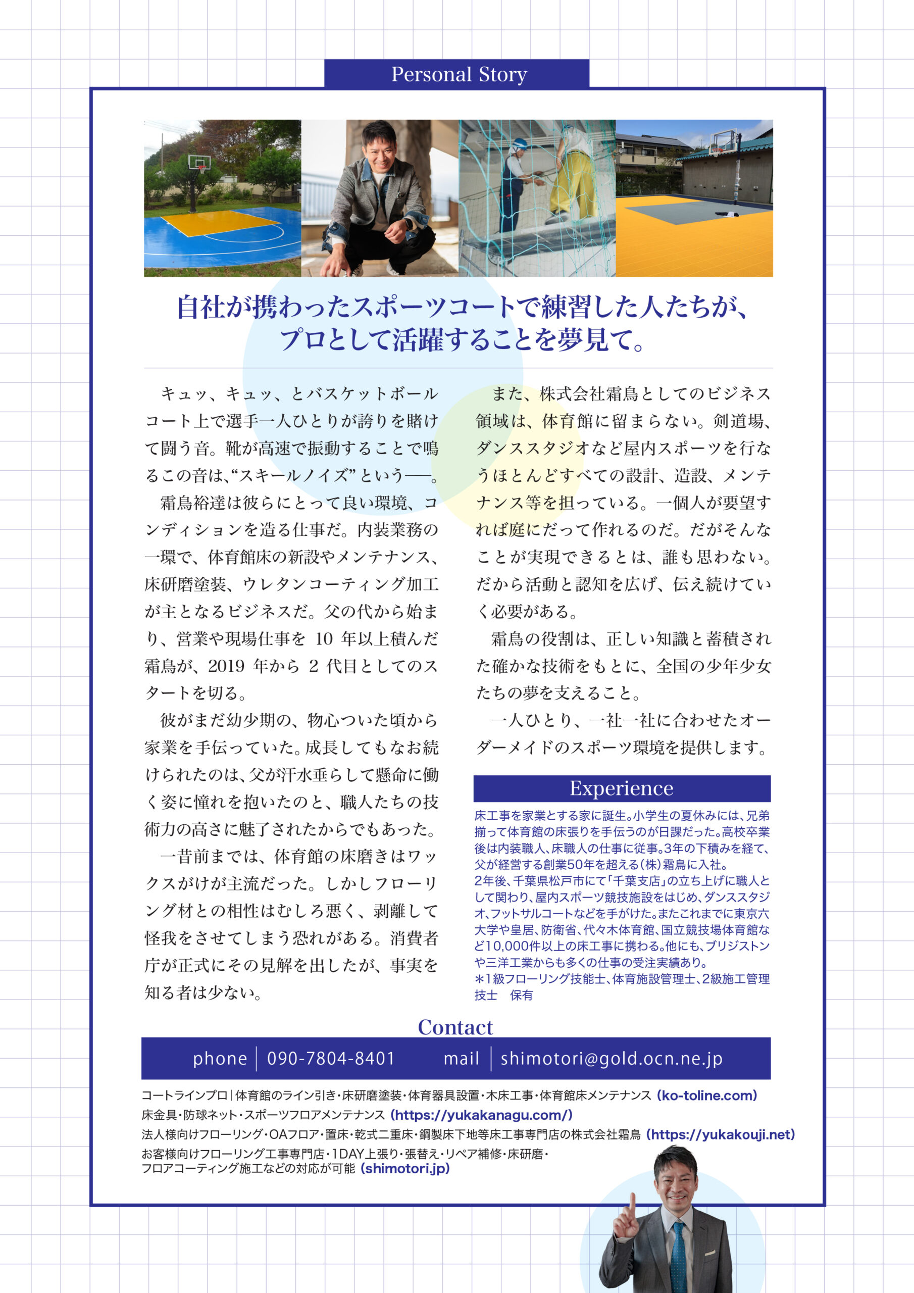 体育器具と床工事を行う家で生まれました。