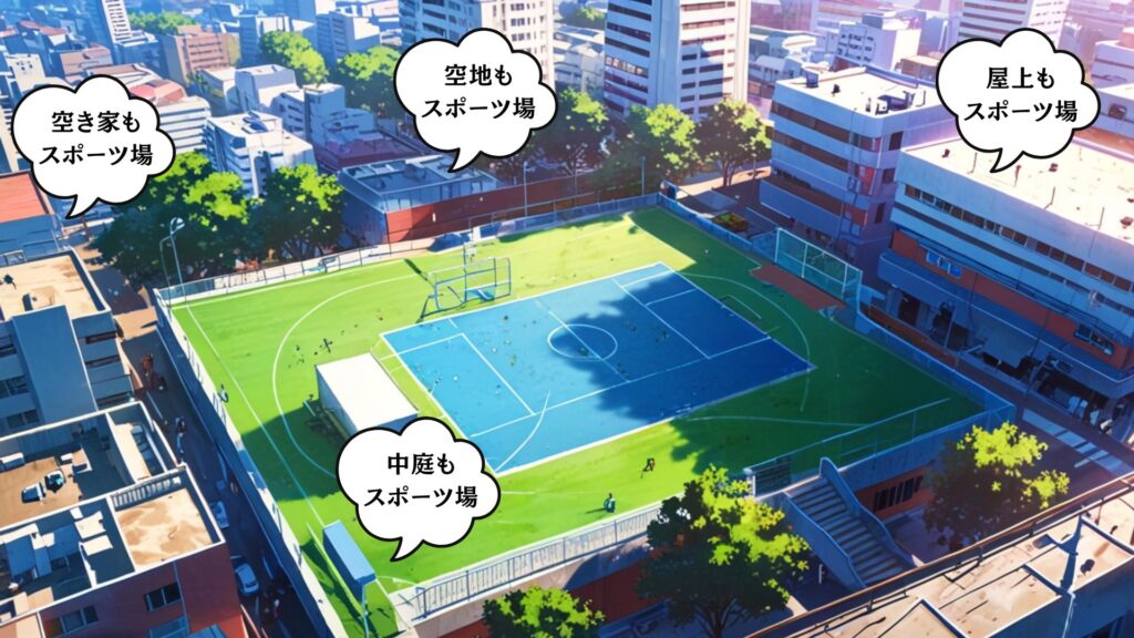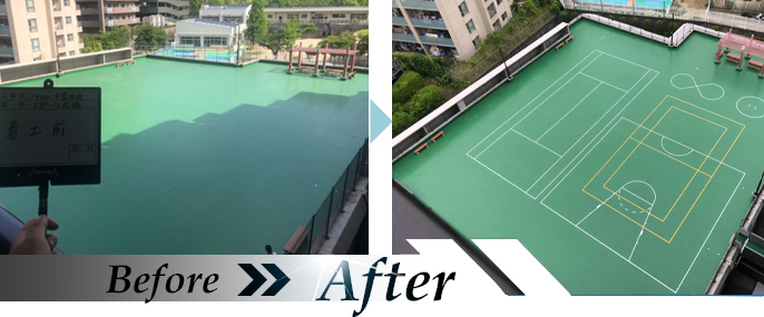 マンションの中庭にスポーツコートを設置