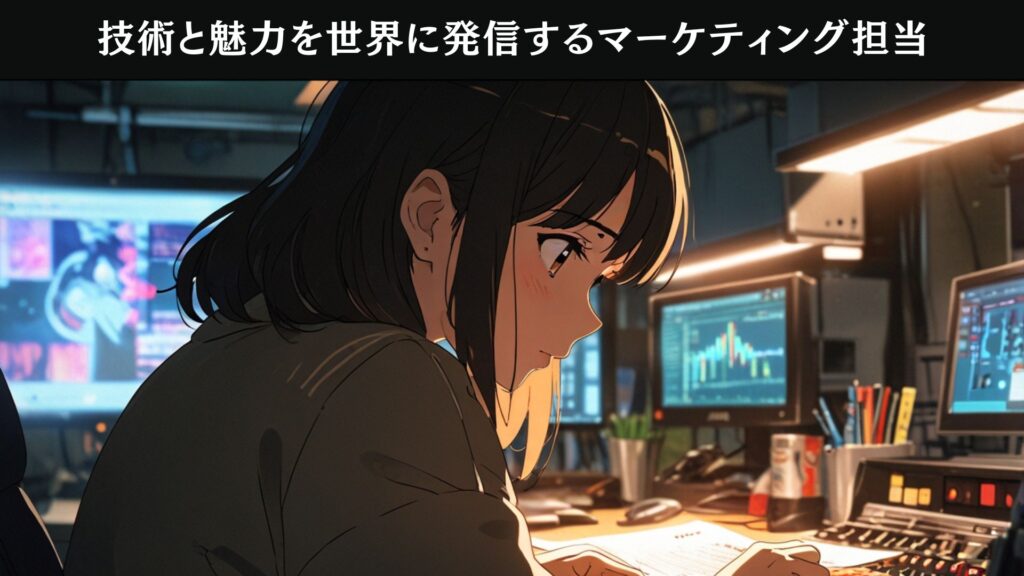 私たちの技術と魅力を世界に発信するマーケティング担当。