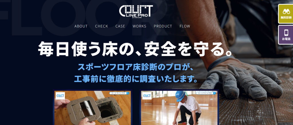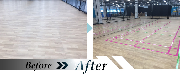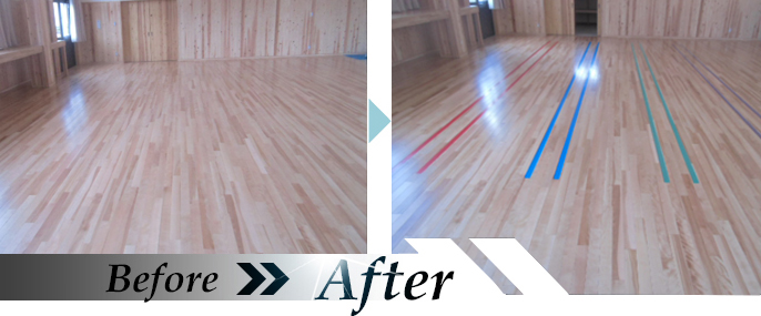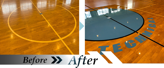 スポーツフロアにロゴを設置