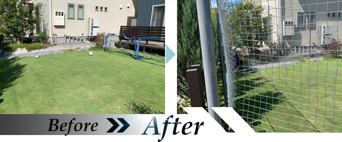 庭に開閉式簡易防球ネットを設置