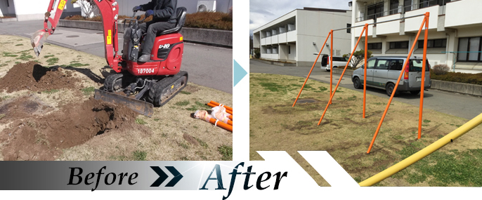 グラウンドに鉄棒を設置