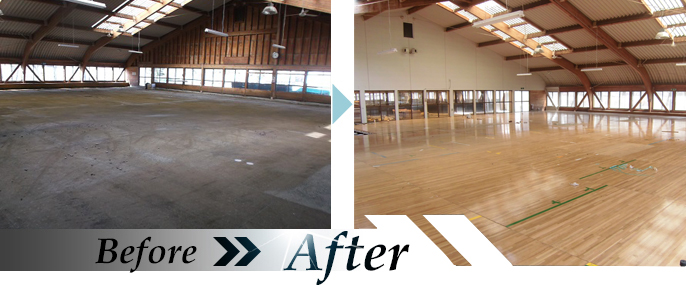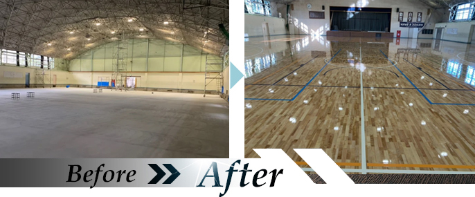 体育館アリーナにスポーツフロアを新設