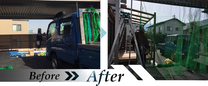 カーポートに防球ネットを設置し練習スペースに
