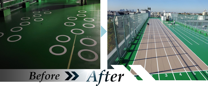 学校屋上に陸上用ラインを設置