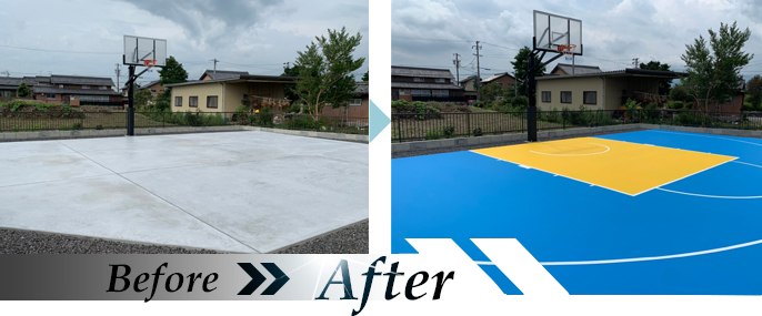 庭にバスケットゴールとコートを設置