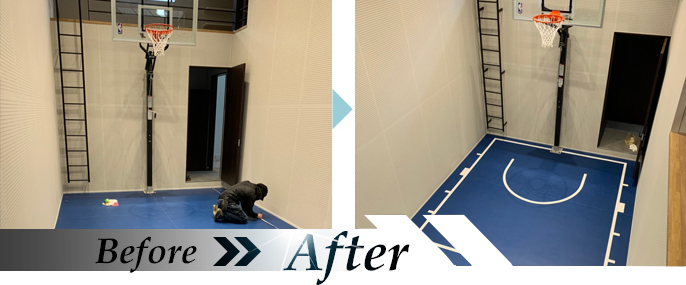 住宅の部屋にバスケットコートを設置