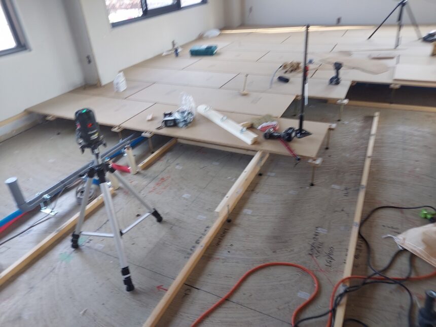 3. 高等学校新築工事、置床・乾式二重床及びOAフロア施工
