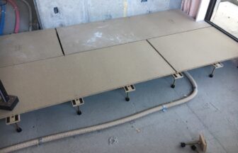 2. ゲストハウス新築工事、置床・乾式二重床、ダミー合板、捨て貼り、フローリング根太張り工事